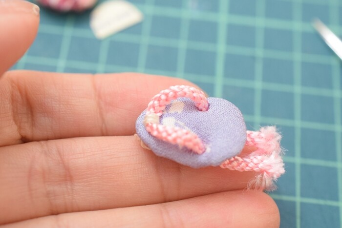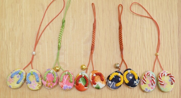 先日、パッチワークサークルの方に教わって、ちりめん布で「草履のストラップ(根付)」を作りました。