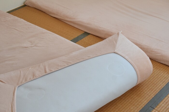 重りのように掛布団、重めの毛布の順に掛けるのがポイントです。