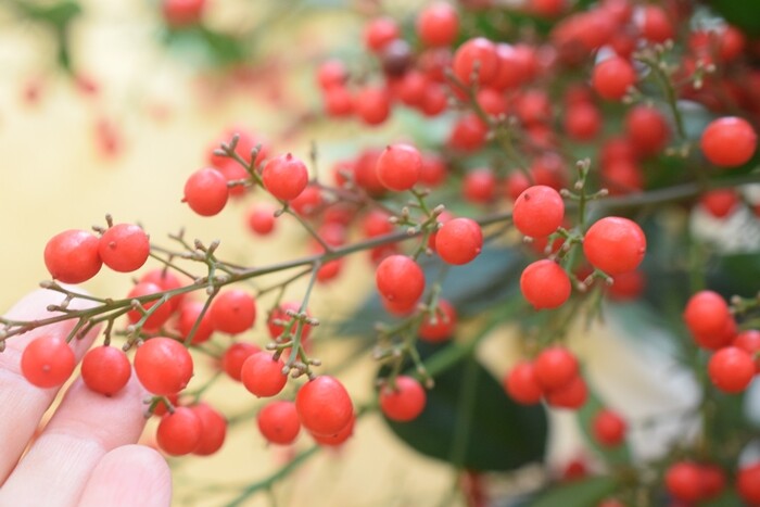 南天は、お正月の縁起物として玄関や床の間に飾るとよいそうです。(「南天」は「難を転じて福となす」という語呂から縁起の良い木と言われています。)