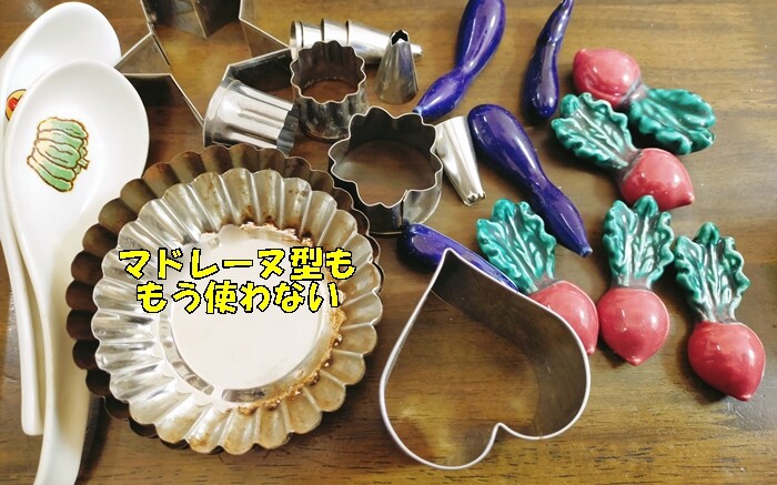 クッキー型、マドレーヌ型などはもう作らないというので、捨てることにしました。