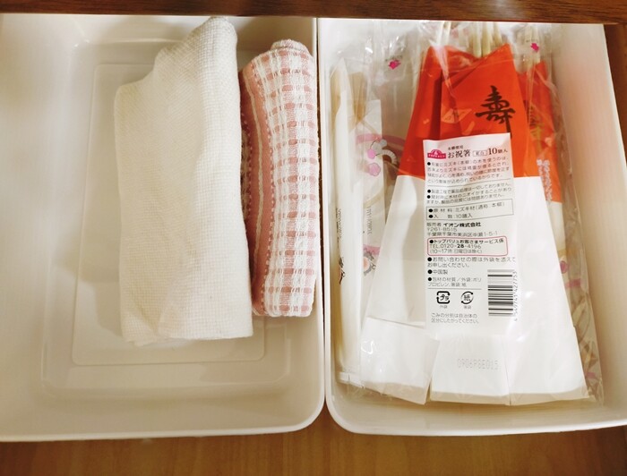 ごちゃごちゃと布巾やら割り箸やらビニール袋やら…