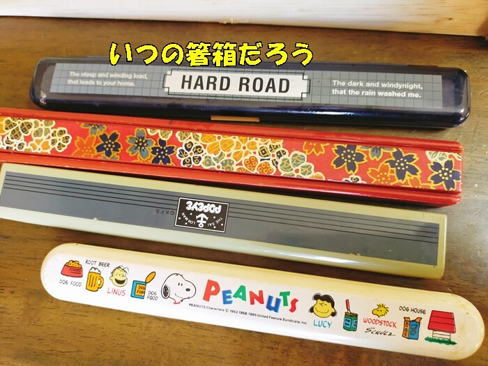 ▼私や弟妹が学生時代に使っていたお弁当箸箱でしょうか。何十年前のものか知らないけれど廃棄。