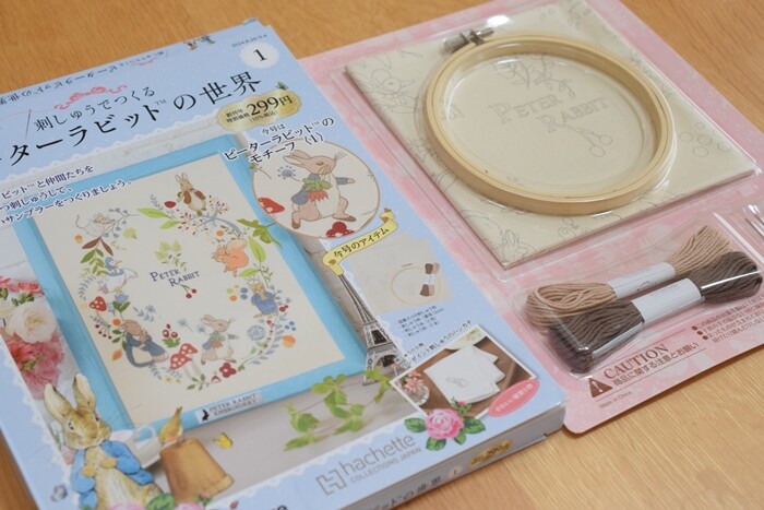 今回、買ってみたのはhachette COLLECTIONS JAPANの「刺しゅうでつくるピーターラビットの世界 創刊号」。私、てっきりこのブログ記事を書くまで「デアゴスティーニ」の商品だとばかり思っていました。「アシェット」という会社の商品でした。