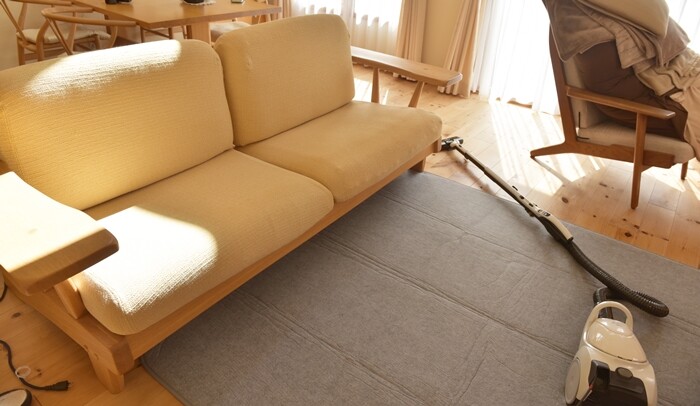 ソファのクッションも全部外して、ゴミくずを掃除機で吸って。