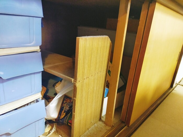 意味をなしていなかった木製の台(父が昔、ここの収納のために作ったのだと思う。)も捨てました。木製なので小さくノコギリで切って、燃やせるゴミの日に出すとのこと。