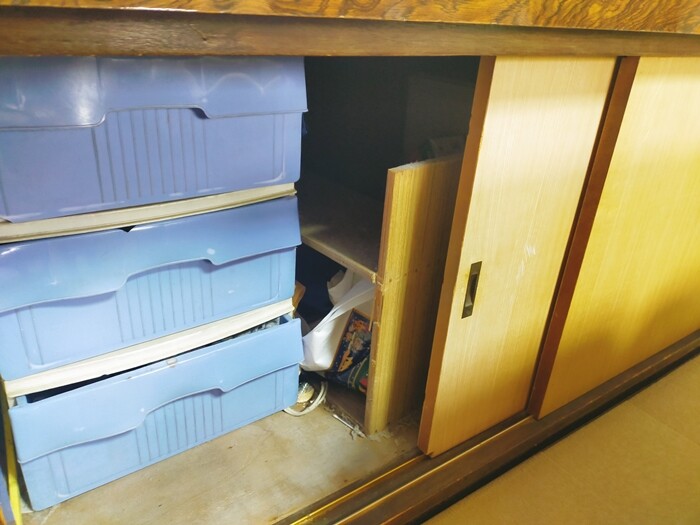 左側の水色の衣装ケースは母の下着や服が入っているそうで、中身は母に確認してもらいました。