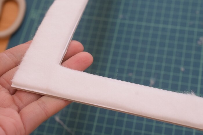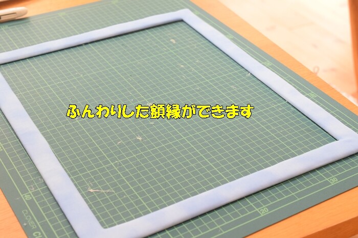 こんな風に綿を挟むことで、ふっくらした額縁ができます。