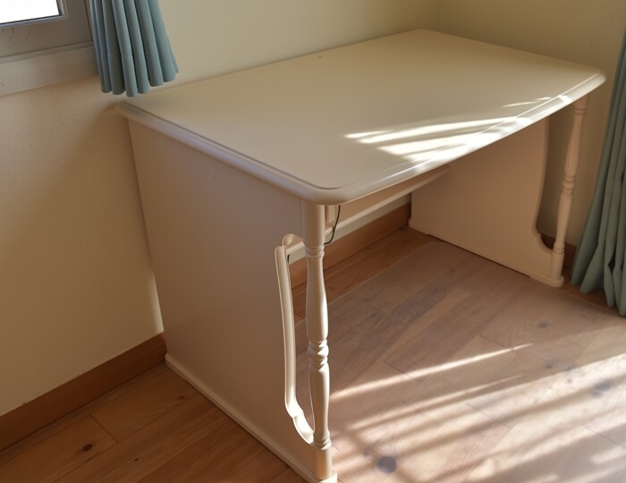 でもこの机、娘が幼稚園のときに実家の母に買ってもらったカリモクのカントリーシリーズで娘の超お気に入りです