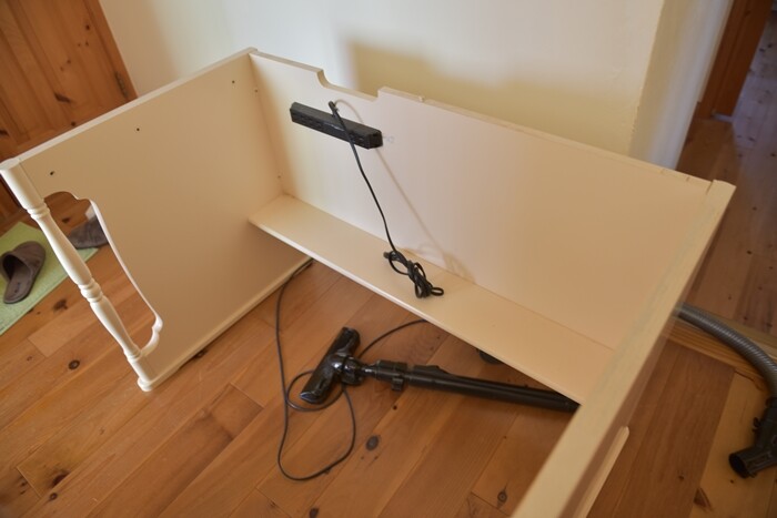 でも、机を下から覗いてみたところネジがあったので、裏からネジを取ったら天板を外せました!