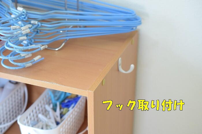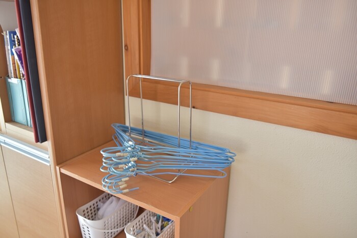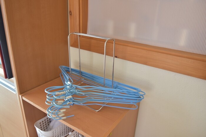 でもね、こうやって置いておくと、洗濯干し用のハンガーが絡まって!