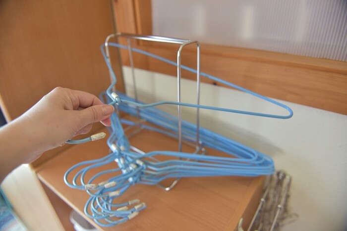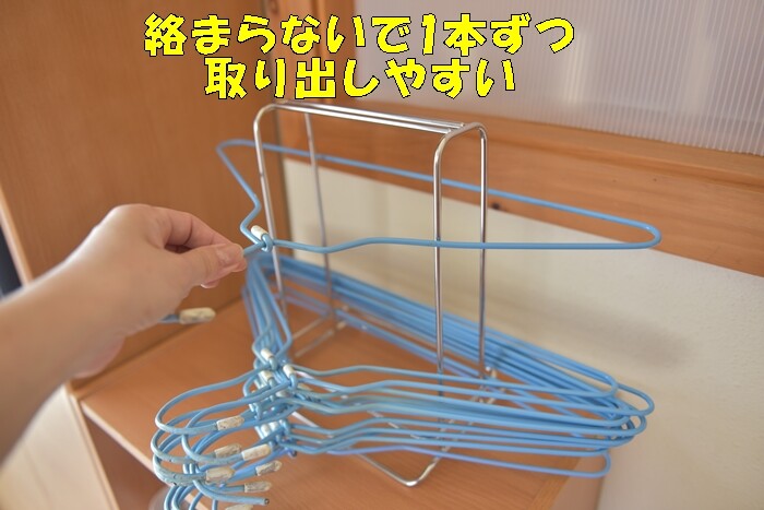こうやって収納したら、絡まらなくなって1本1本のハンガーを取り出しやすくなって、洗濯干しが楽になりましたよ~✨
