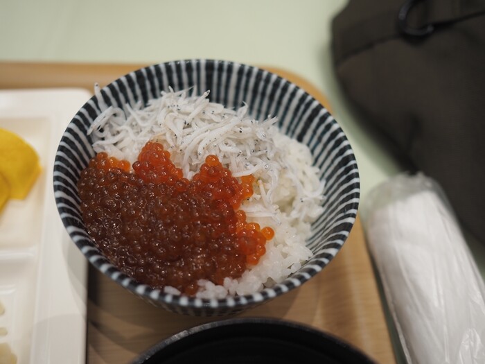 イクラや鯛、ブリなどのセルフ海鮮丼やみかんジュース飲み比べ、ドーナツまでありました♬