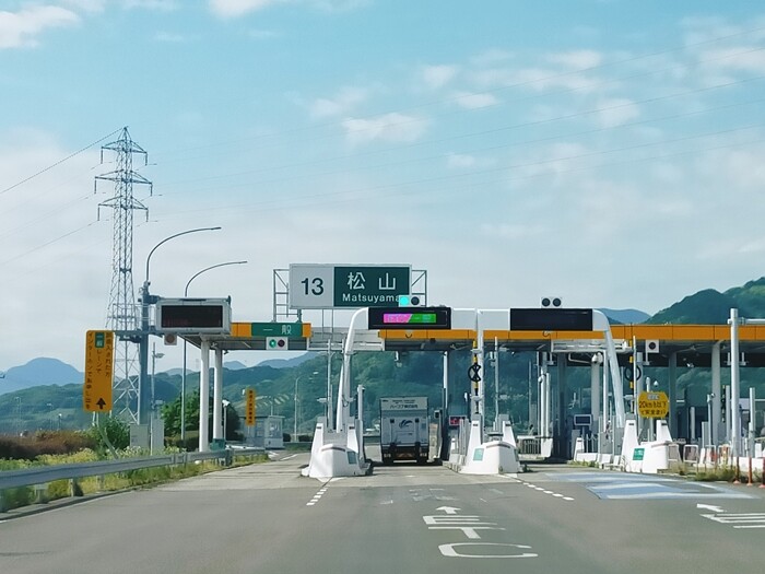 松山ICから松山自動車道に乗りました。高速も空いていてよいわ~
