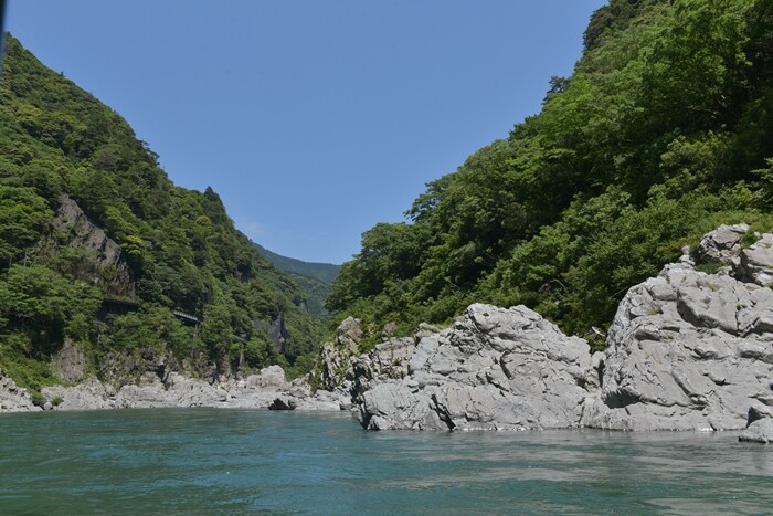 狭い渓谷の間をゆっくりと川を下って小歩危の方に向かって進んでいきました。