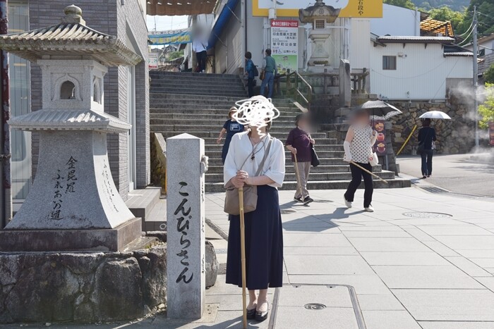ホテルに置いてあった杖を借りて、785段の階段を登る「こんぴらさんまいり」のスタートです!