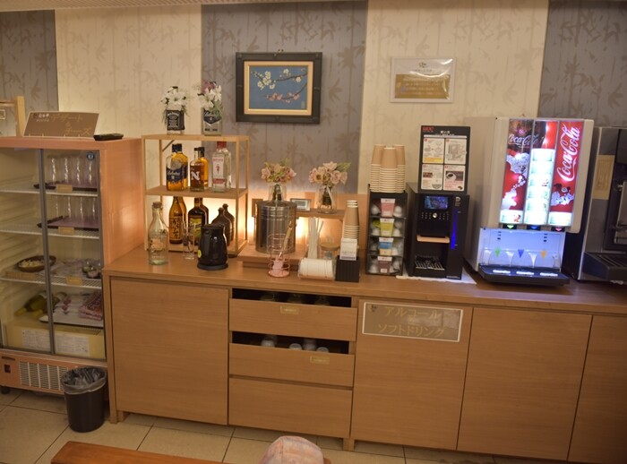 2階にあるラウンジなのだけれど、父母ヶ浜から帰って来て午後7時ぐらいに私たちが行ったときには誰もいませんでした(*・ω・)(まぁ、夕飯時ですからね~。)