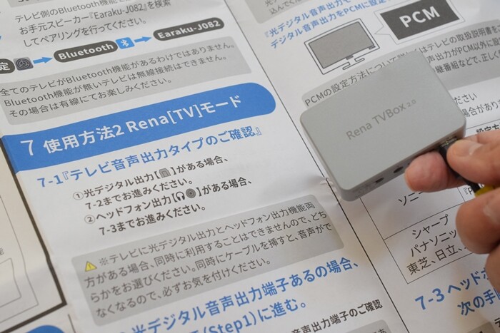 こうやって送信機をテレビに繋ぐと、スピーカーからテレビの音が聞こえるようになりました。