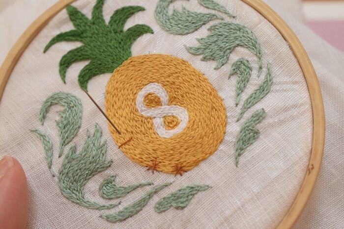 パイナップルが大好きなので(食べるのも柄も♪)、パイナップルの刺繍ができてとても楽しかったです♬