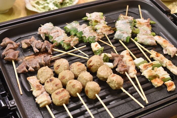 ホットプレートで焼鳥、なかなかよいです♬