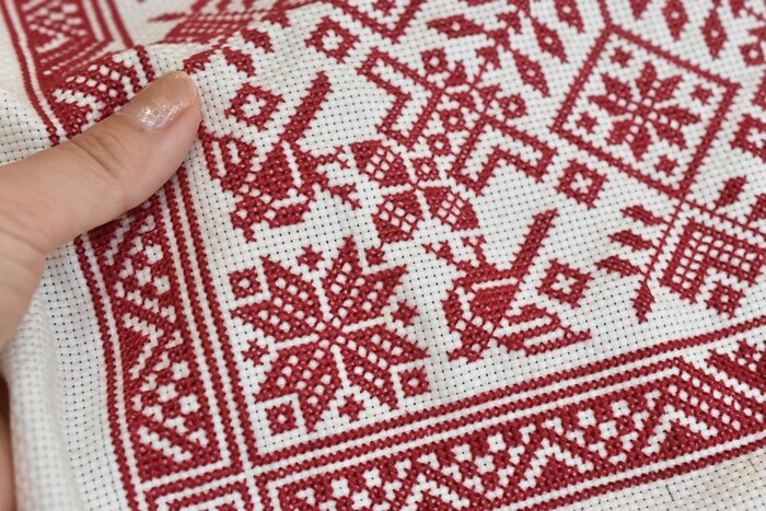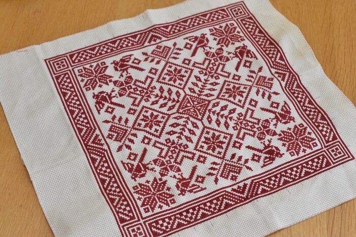 私が今回使った布は、10㎝あたり55目の布です。(14カウント)