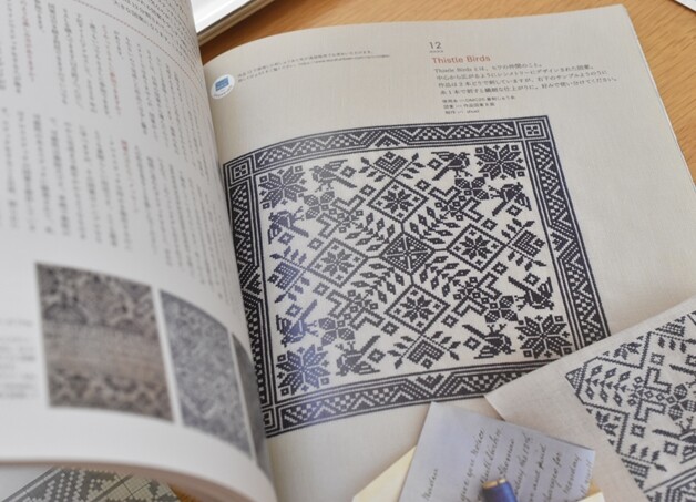 本ではブルーの糸を使っていました。ブルーも素敵。