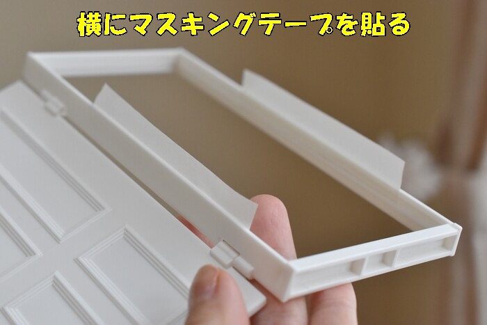 ドアの枠の横にマスキングテープを貼りまして…
