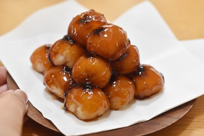 そこで、串に刺さった団子をお箸でそーっと外して。