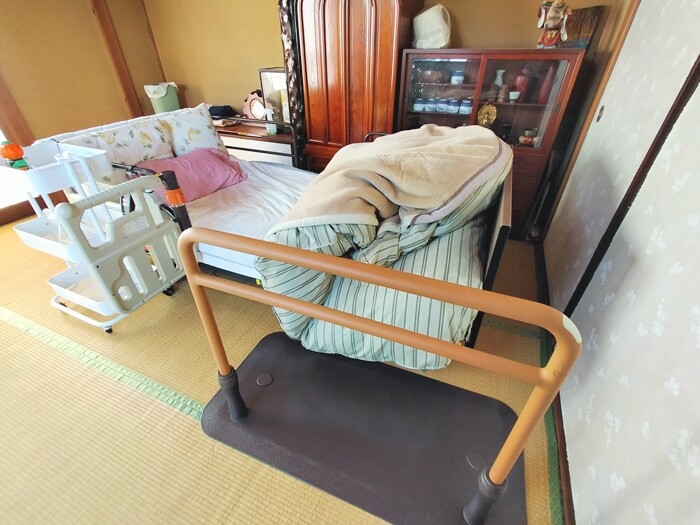 さらに、ベッド脇にはロングタイプの手すりを1つ追加。(こちらも自己負担200円/月)