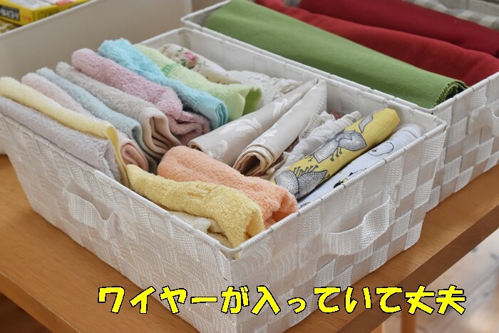 一方で、下2段で使っている無印良品の「やわらかポリエチレンケース」が、