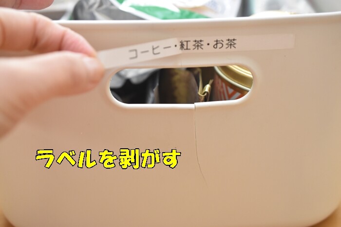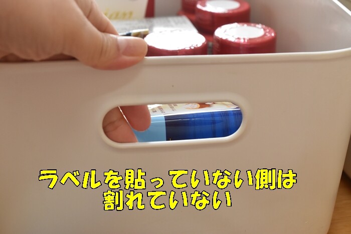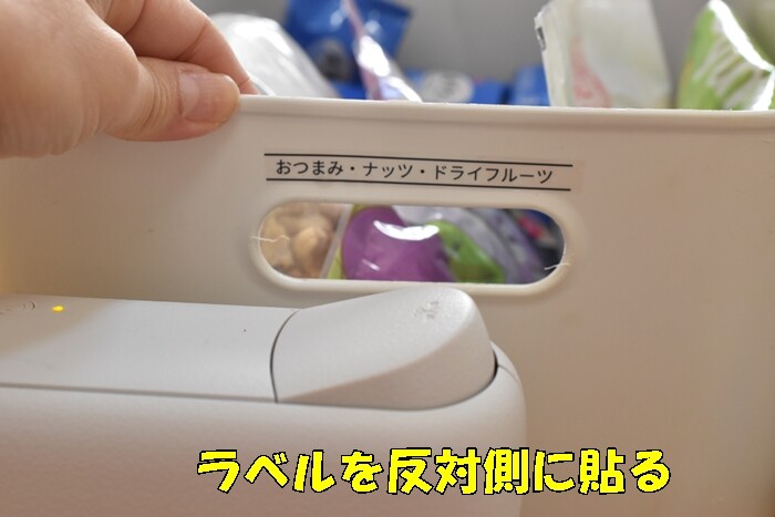 いつも「ラベルを貼った側を手前に」してパントリーに入れていました。
