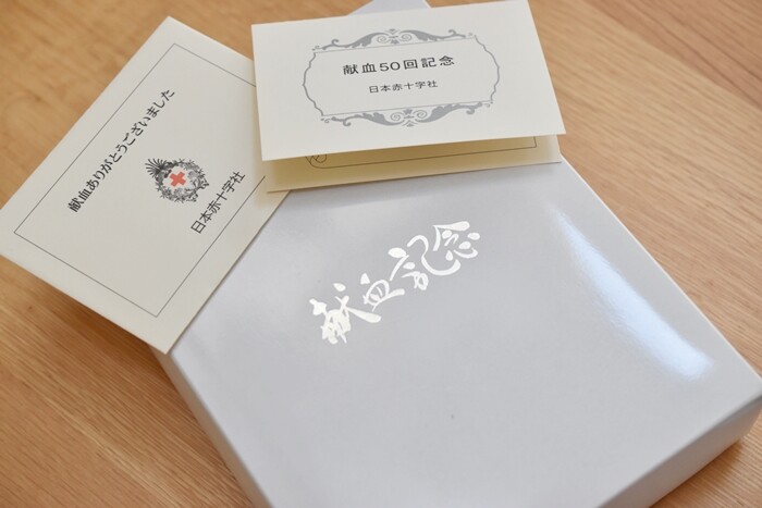 今回、50回目の献血ということで、記念品をいただきました✨