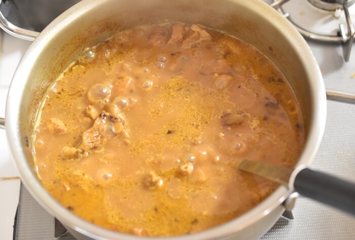 このカレー、なんと2時間煮込むレシピなので、お昼頃からキッチンに立って準備していました(・∀・)作り方はこちらを参考にしたそうです。