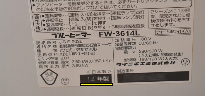 我が家の石油ファンヒーターを見たら、2014年製!……もう10年使っていました。