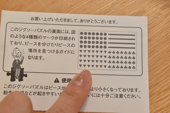最初に裏を見て4種類にピースを分けてからスタートするようになっています。