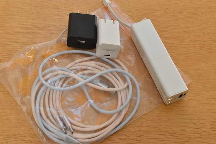 あとは、ケーブルや充電器も忘れずに持って行きます。
