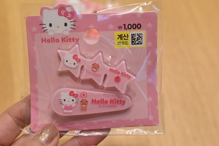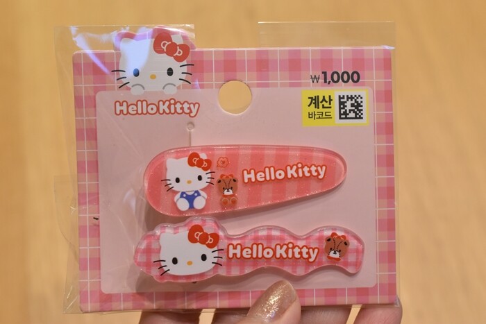娘はキティちゃんのヘアピン(前髪クリップ?)2種を購入♬(₩1,000=約110円)。
