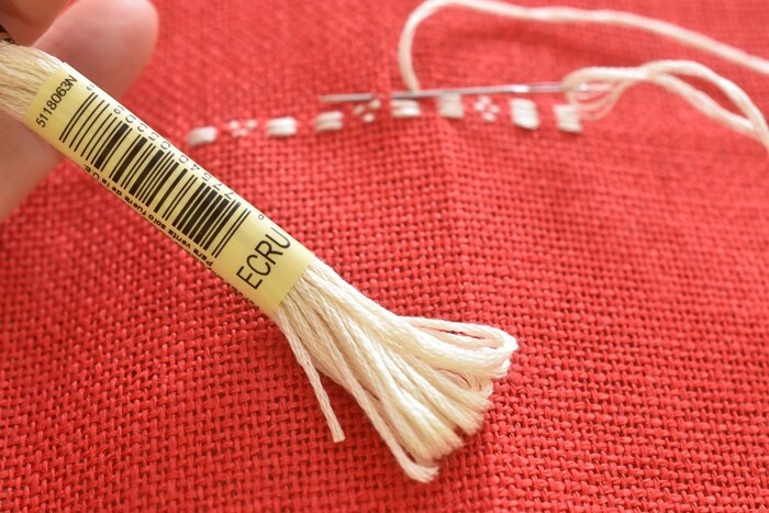 ▼こぎん刺し用の専用糸というのも売られていますが、今回はわざわざ買わずに刺繍糸を使いました。