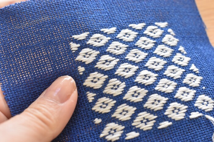以前東北に旅行した際に、こぎん刺し体験に参加しました。コースターを作ったんですが楽しかったなー。