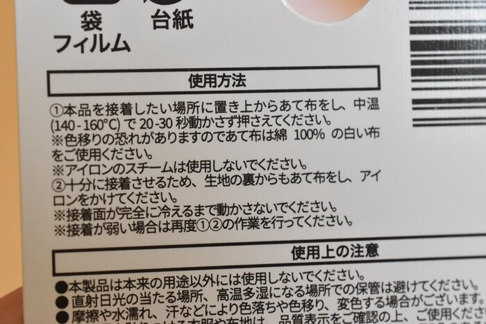 アイロンで簡単に接着できます。