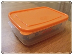 MEMEさんが「パッキンつきのお弁当箱に収納すれば乾燥しない」と書かれているのを見て、私も昔100均で買ったいらないタッパウエア(の偽物)の中に入れてみました。