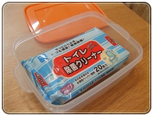 もしもトイレの中など見える場所に置くなら、真っ白で中の見えないタッパーがダイソーに売られていたので、それを買って収納してもいいですね☆