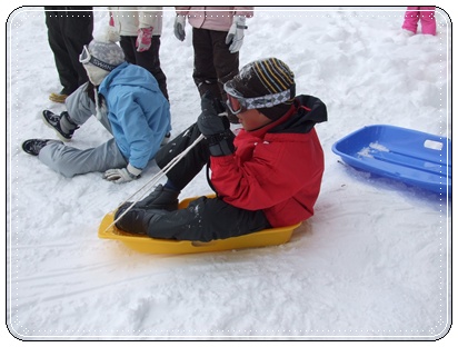 宿のすぐ裏手が山になっているので、子供たちはそこで雪合戦したりソリ遊びをしていました。