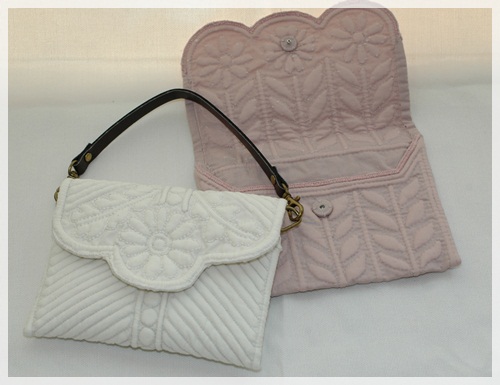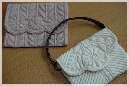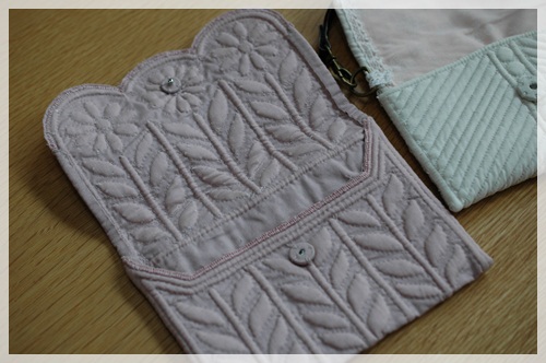 ↑並べて撮影したピンクのプチケースは、パッチワークサークルの先生の作品です。
