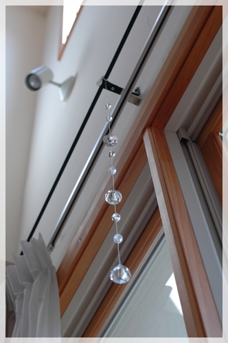 レースのカーテンを閉めるとあまり目立ちませんが…サンキャッチャーって風水的にもいいらしいですね。