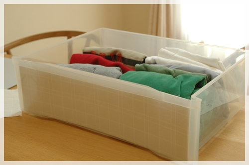 衣装ケースの中身を見えなくする作戦は、今までも娘の部屋のクローゼットや布の整頓のところでしてきたので繰り返しになりますが…。