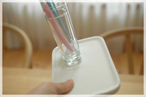 我が家も歯ブラシはコップに立ててます、汚れても簡単に洗えるし、見た目も爽やかで良いですよね~。