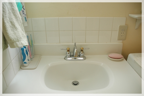 今まで洗面台の上に色々物を置いていたのですが、見た目も悪いし、蛇口の近くに物を置くと、邪魔だったのです。