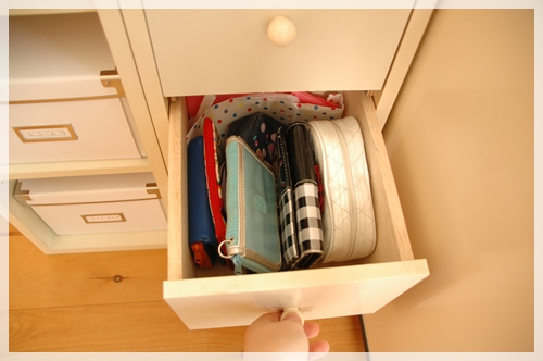 サイドテーブルの引き出しの中もこんな風に片付けていました。
