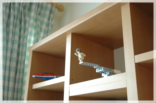 ↓レゴが飛び出している(笑)相変わらずレゴばかりの本棚…