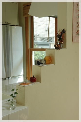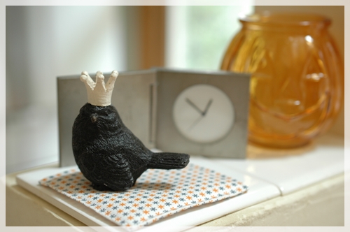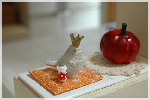 夏はブルーやグリーンの置物を置いていたのですが、少し秋らしくなりました。